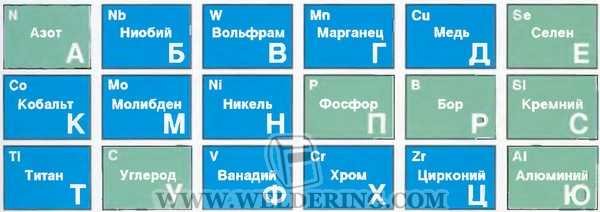 химических элементов, используемых как легирующие добавки