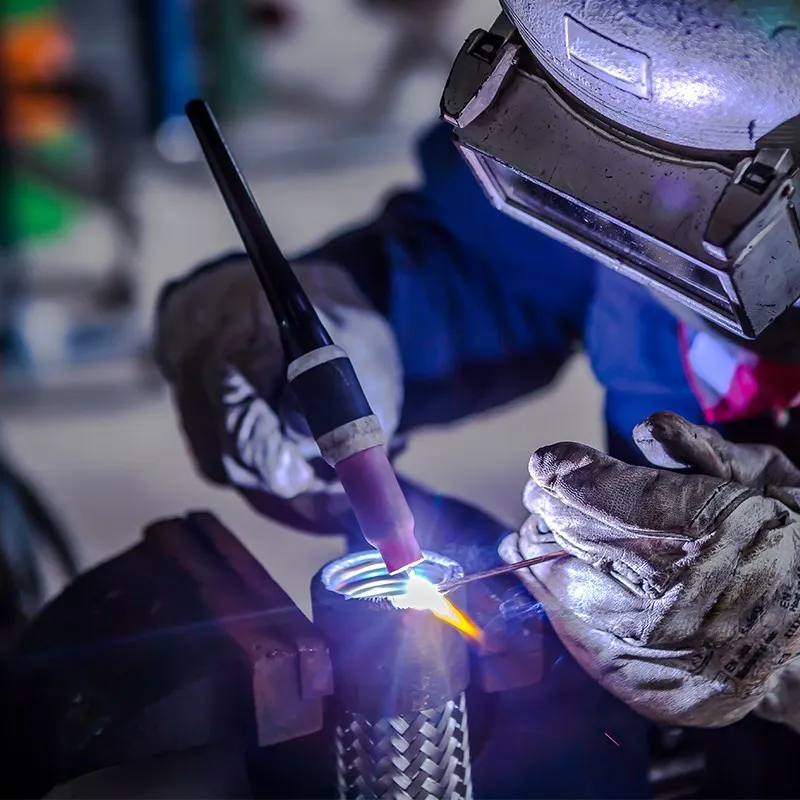 Аргонная сварка (GTAW), также известная как сварка вольфрамовым электродом в среде инертного газа (TIG), представляет собой еще один тип дуговой сварки, при котором электрическая дуга нагревает два куска металла вместе с контролем точности. Обычно это делается вручную с помощью ножной педали или ручек, которые контролируют теплоотдачу горелки. Газ аргон используется вместо защитного газа, как при сварке MIG, потому что он обеспечивает большую защиту от окисления при высоких температурах. Это делает аргонную сварку идеальной для тонких металлов, которые требуют точного контроля над подводом тепла, чтобы они не деформировались и не деформировались в процессе сварки, например сплавы алюминия или нержавеющей стали.