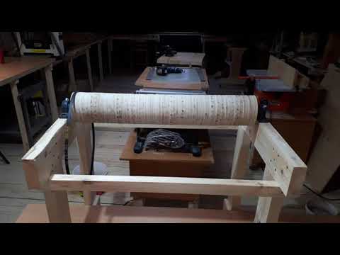 В видео от канала Гараж Самоделкина показан барабанный шлифовальный станок для плоской шлифовки древесины, который сделали авторы своими раками из подручных материалов: