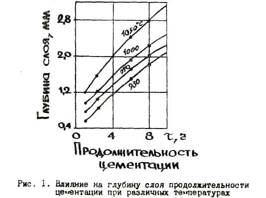 Цементация деталей достаточно продолжительный процесс. Скорость внедрения углерода составляет 0,1 мм в час. Не трудно подсчитать, что требуемый для длительной эксплуатации 1 мм можно получить за 10 часов.