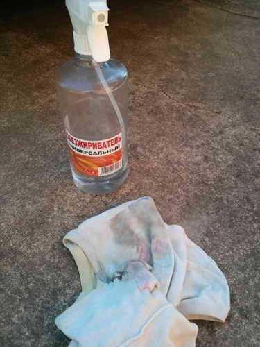 Пока растворитель еще влажный, следует протереть участок чистым полотенцем, чтобы поднять и удалить загрязнения.