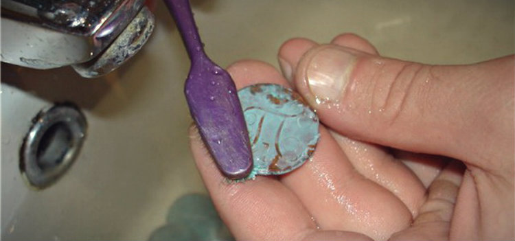 При первом образовании патина достаточно слабая, чтобы ее можно было удалить, протерев ее ватным тампоном.
