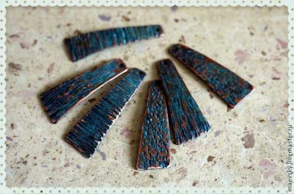 По поверхности меди я прошлась мелкой наждачкой. Проявился контраст между медью и патиной. При желании, этого можно не делать и оставить все как есть.