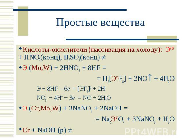 По видам металлов пассивация может быть представлена такими процессами, как:
