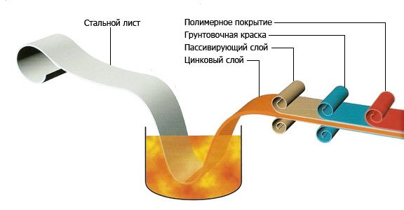 Бело-голубую пассивацию металла. Для этой цели используют специальный состав, который при погружении в него металлоконструкции приводит к образованию на ней защитной глянцевой плёнки голубого цвета. Покрытие имеет толщину 9-12 мкм и отличается равномерностью, устойчиво к воздействию влаги и обесцвечиванию.