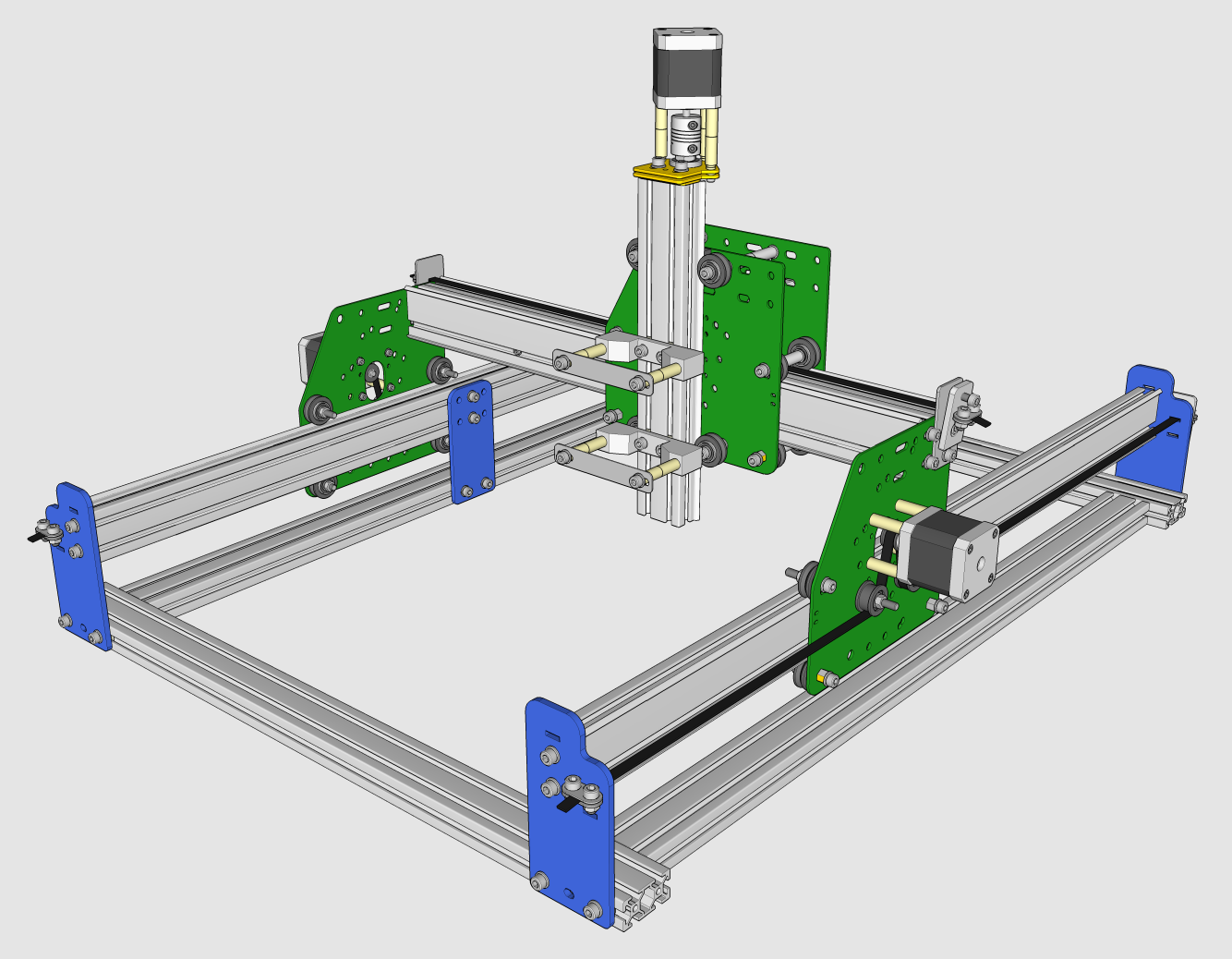Да, шаговые моторы для перемещения портала по оси Х будут крепиться на самом портале! Почему-то когда говорят о приводе зубчатым ремнем, в мозгах рисуется ремень в виде кольца с мотором, установленным на раму, а натяжение ремня организуется на портале или каретке. Так делать можно, но лучший ли это способ? Не уверен. Мы пойдем другим путем. Устроим из ремня псевдо зубчатую рейку.