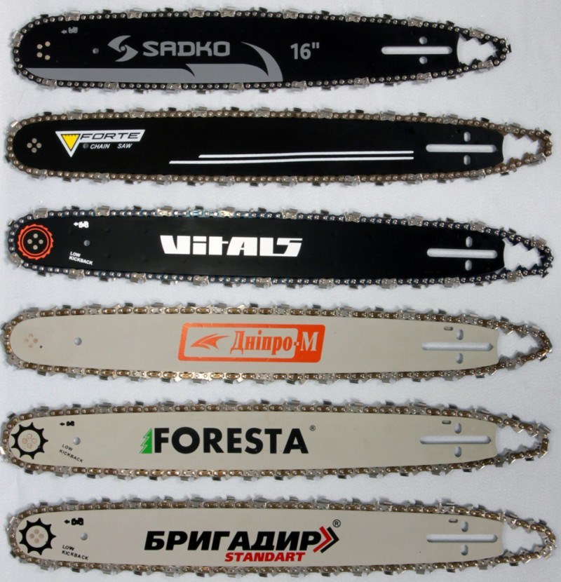 Цепи различаются по длине, выбирать нужно в соответствии с шиной. Новая цепь в процессе работы будет немного растягиваться, поэтому необходимо регулярно подтягивать специальным винтом на шине.