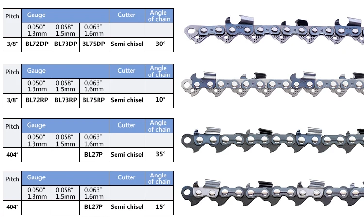 Однако не все цепи для бензопил одинаковы. Различные «углы долота» или конструкции лезвий на фрезах влияют на эффективность цепи при резке в самых разных условиях. Насколько надежна цепь, зависит и от углов долота. Вот немного больше информации о различных доступных типах.