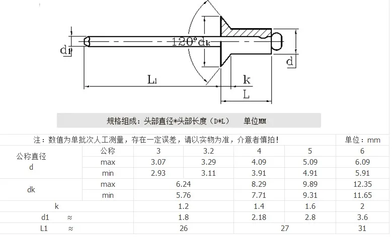 Заклепка 3,2×12 имеет диаметр 3,175 мм (или 1/8 дюйма) и длина 12,7 мм (или 1/2 дюйма). Мы находим диапазон захвата, вычитая 1,5-кратный диаметр заклепки из ее длины.