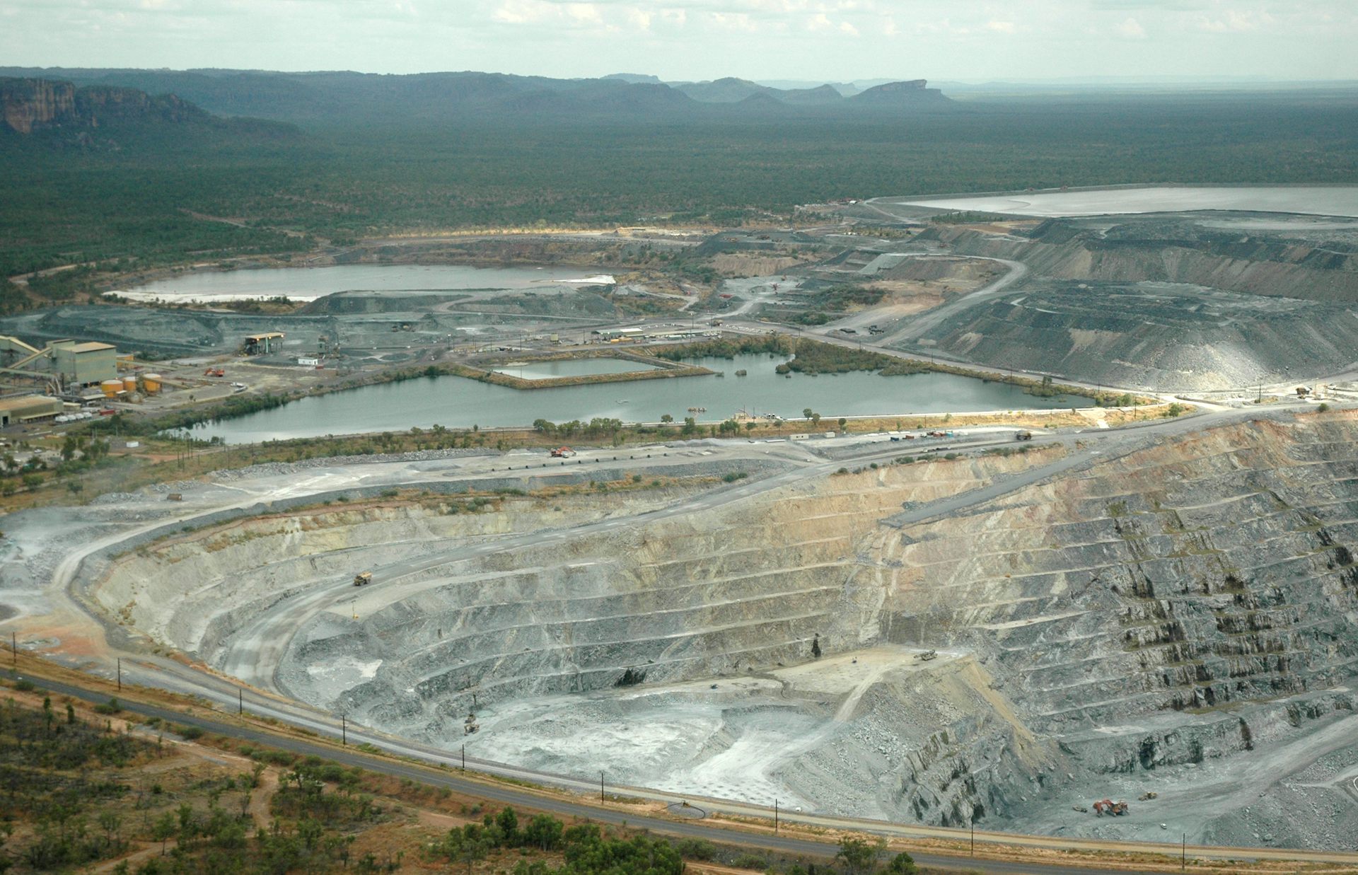 Существует 3 основных способа добычи урана. Первый способ – открытый, подходит для тех случаев, когда рудное тело находится близко к поверхности земли. При открытом способе добыче роют бульдозерами большую яму и экскаваторами грузят руду в самосвалы, которые везут ее к перерабатывающему комплексу.