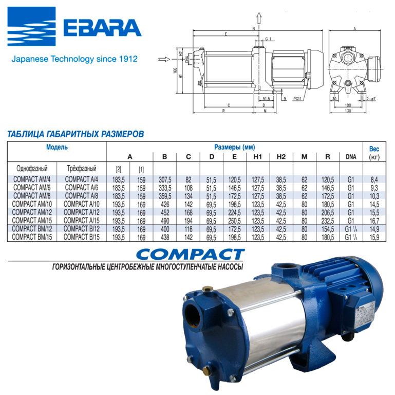 | P-CompAM-15-230 | EBARA Compact AM/15, 230 В | 454,38 € – 30% (стат 649,12 €) | ||
