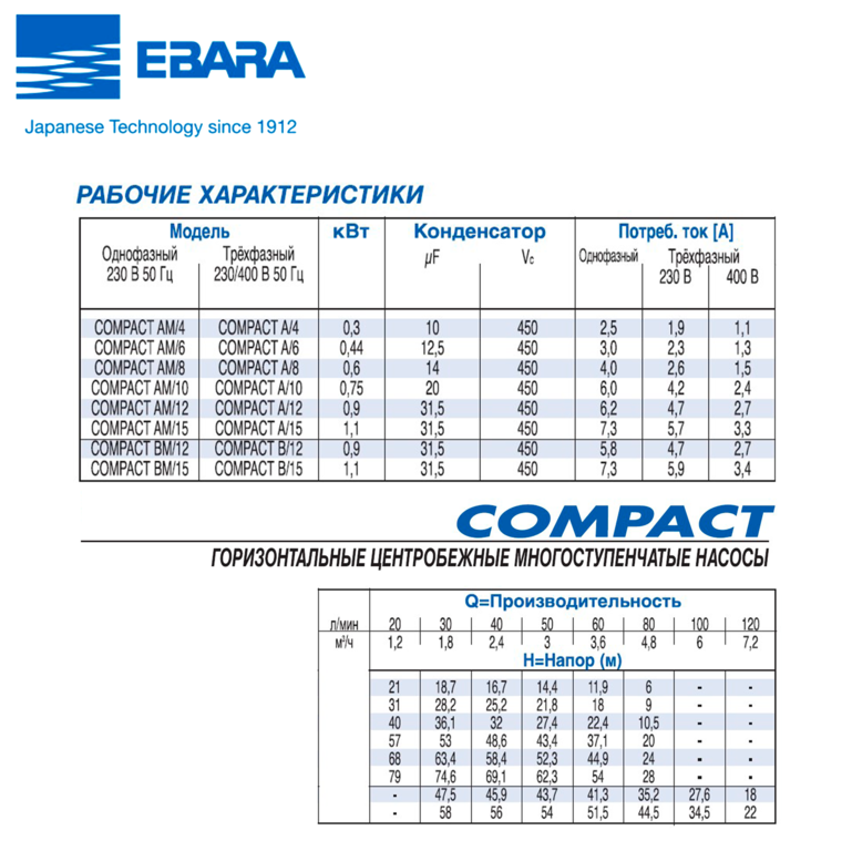 Ebara compact 15 am: Насос EBARA COMPACT AM/15 артикул 1480060000