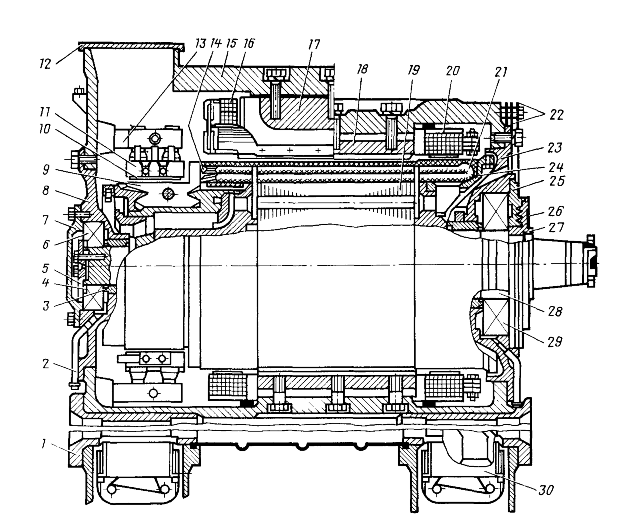 Предназначен для преобразования механической энергии вращения коленчатого вала дизеля в электрическую энергию питания ТЭД.