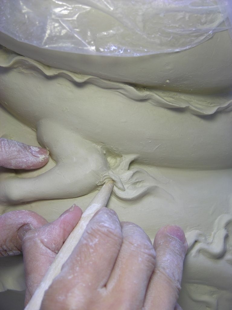 шликер также можно использовать для декорирования глины. Два самых популярных способа использования накладок для украшения — это покрасить их или натянуть на шлейфы.
