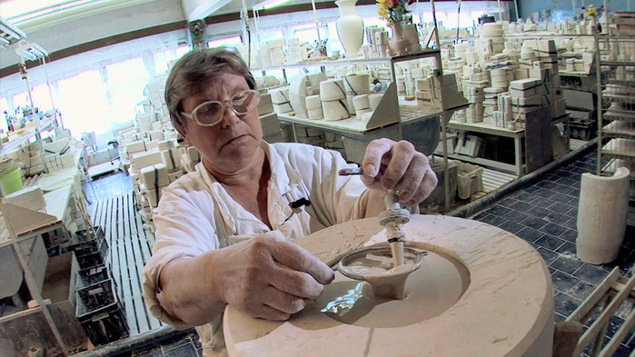 Процесс шликерного литья включает заливку шликера в гипсовую форму. Пористая штукатурка поглощает воду из шликера, а частицы глины затвердевают, принимая форму формы. Избыток шликера из центра формы выливается, образуя полую форму.