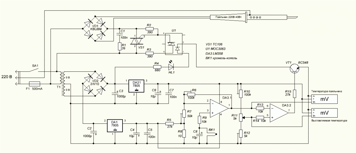 Схема подключения паяльной станции 110 В своими руками (щелкните, чтобы увеличить)