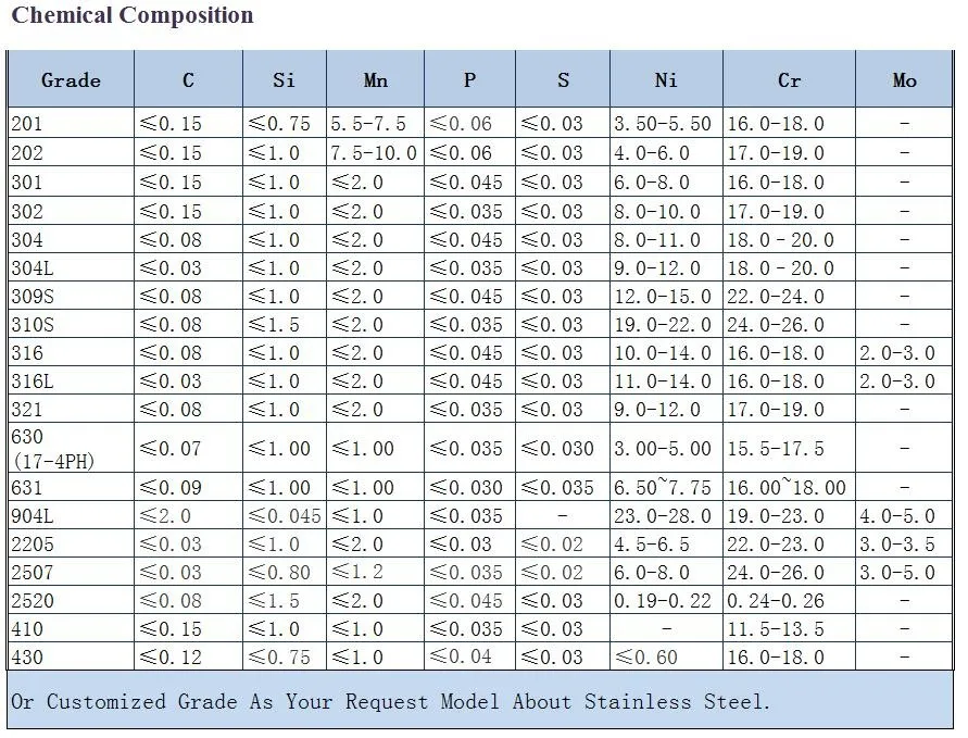 | 904L | 19.0-21.0 | 4.0-5. 0 | 0.15 MAX | 32.2-39.9 |
