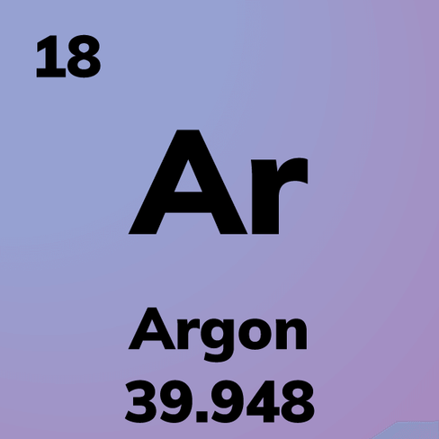 Ar (лат. Argon). Третий по распространённости элемент в земной атмосфере (после азота и кислорода) — 0,93 % по объёму. Простое вещество аргон — инертный одноатомный газ без цвета, вкуса и запаха.