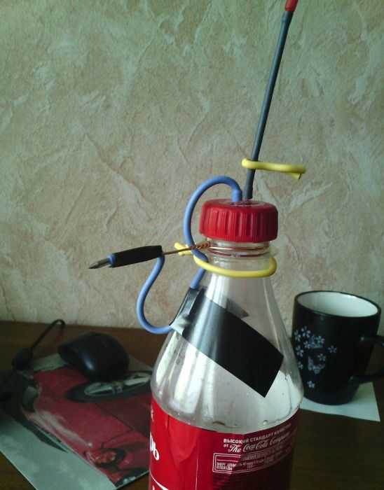 В крышке делается 2 отверстия сверлом 2,5 мм, в отверстия вставляются “патрубки”, из все того же стержня ручки,