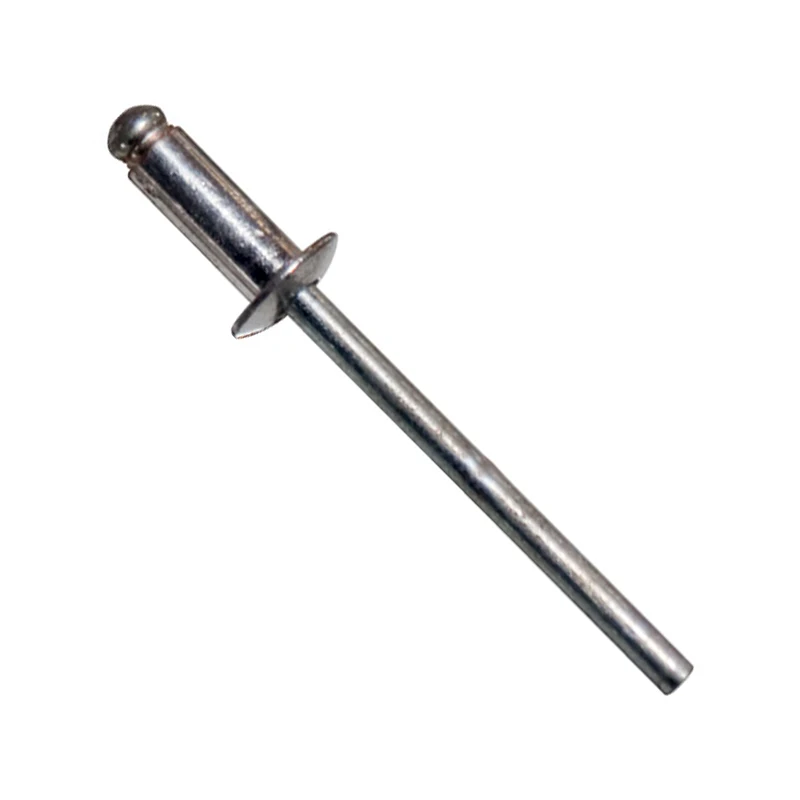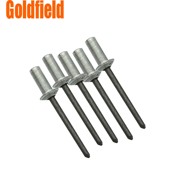 Эта алюминиевая глухая заклепка с закрытым концом имеет автономный стальной стержень и слегка закругленную головку, которая в два раза больше диаметра корпуса. Алюминий имеет более низкую прочность на сдвиг и растяжение, но обладает коррозионной стойкостью.