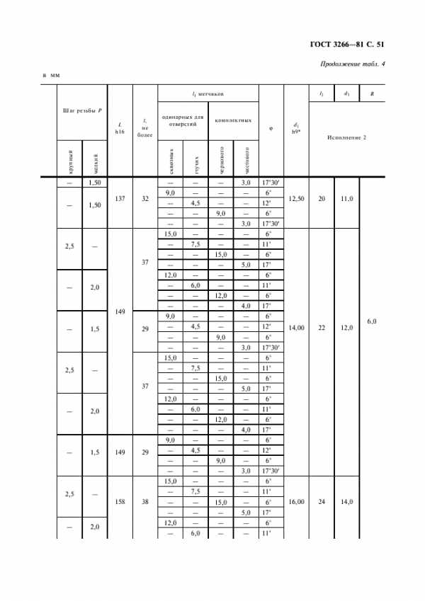 2. Метчики должны изготовляться для сквозных и глухих отверстий.3. Конструкция и размеры метчиков должны соответствовать указанным на черт. 1, 2 и в табл. 1, 2.