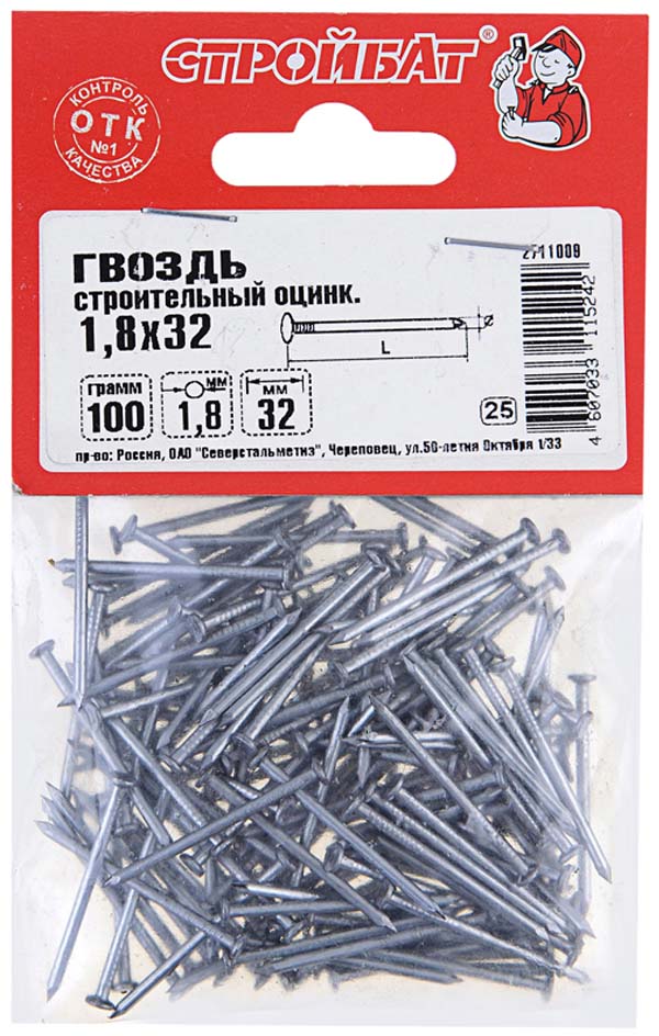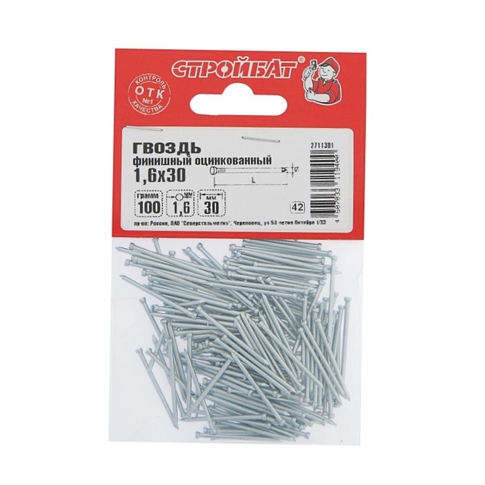 Финишные гвозди оцинкованные. Особенности конструкции, применения, размерный ряд