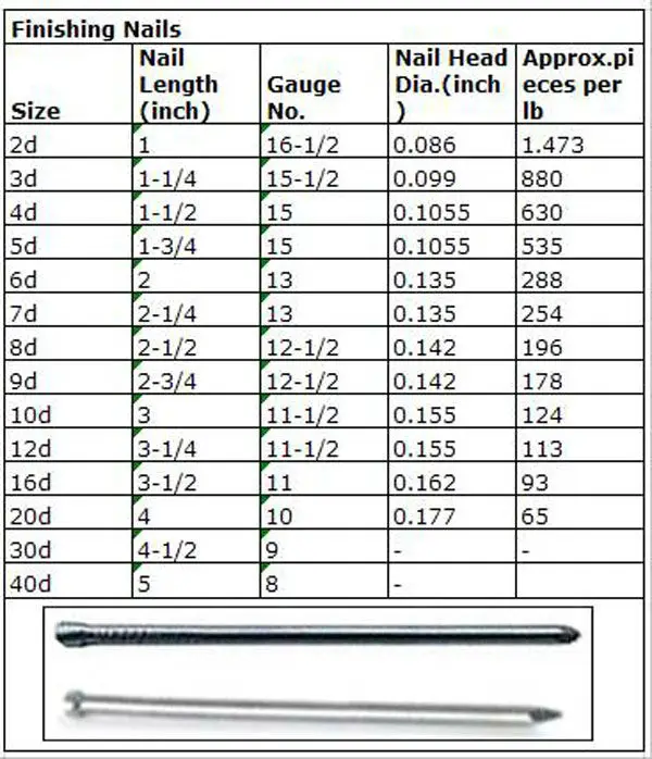 Что такое финишные гвозди? Отделочные гвозди также называются отделочными гвоздями. Они состоят из стальной проволоки 15 или 16 калибра. По сравнению со штифтовыми гвоздями, он имеет немного толстый диаметр. С финишными гвоздями вы сможете сделать более прочную фиксацию. Он может быть идеальным для более тяжелых приложений, включая плинтусы и шкафы. Если он идет большого диаметра, то крепление может иметь и более широкую цельную. Именно по этой причине вам придется скрывать пятна, чтобы иметь чистый вид.