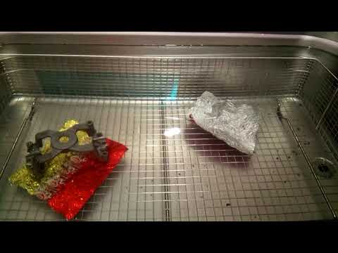 Тестирование. Недостаточно просто предположить, что ультразвуковая ванна работает. Вам нужно будет регулярно тестировать его. Вы можете сделать это, используя кусок легкой алюминиевой фольги шириной с устройство и чистящий раствор. Держите фольгу вертикально в резервуаре примерно 60 секунд. Если устройство работает должным образом, на фольге появятся вмятины и точечная коррозия. 3 На рынке есть продукты, созданные специально для тестирования вашей ультразвуковой ванны, которые заслуживают изучения.