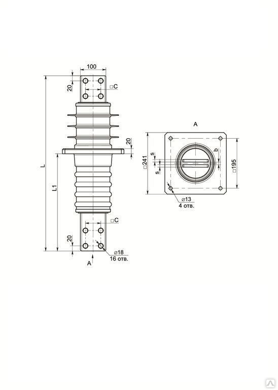 наружной установки ипу Проходной изолятор с токопроводом (токоведущими шинами) содержит токоведущий элемент, механически соединенный с изоляционной частью. Изделие предназначено для проводки токоведущих элементов через стенку, имеющую другой электрический потенциал.