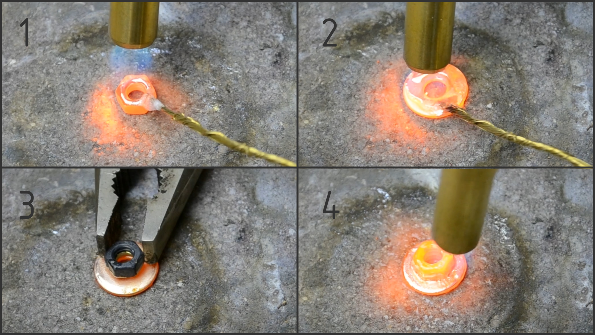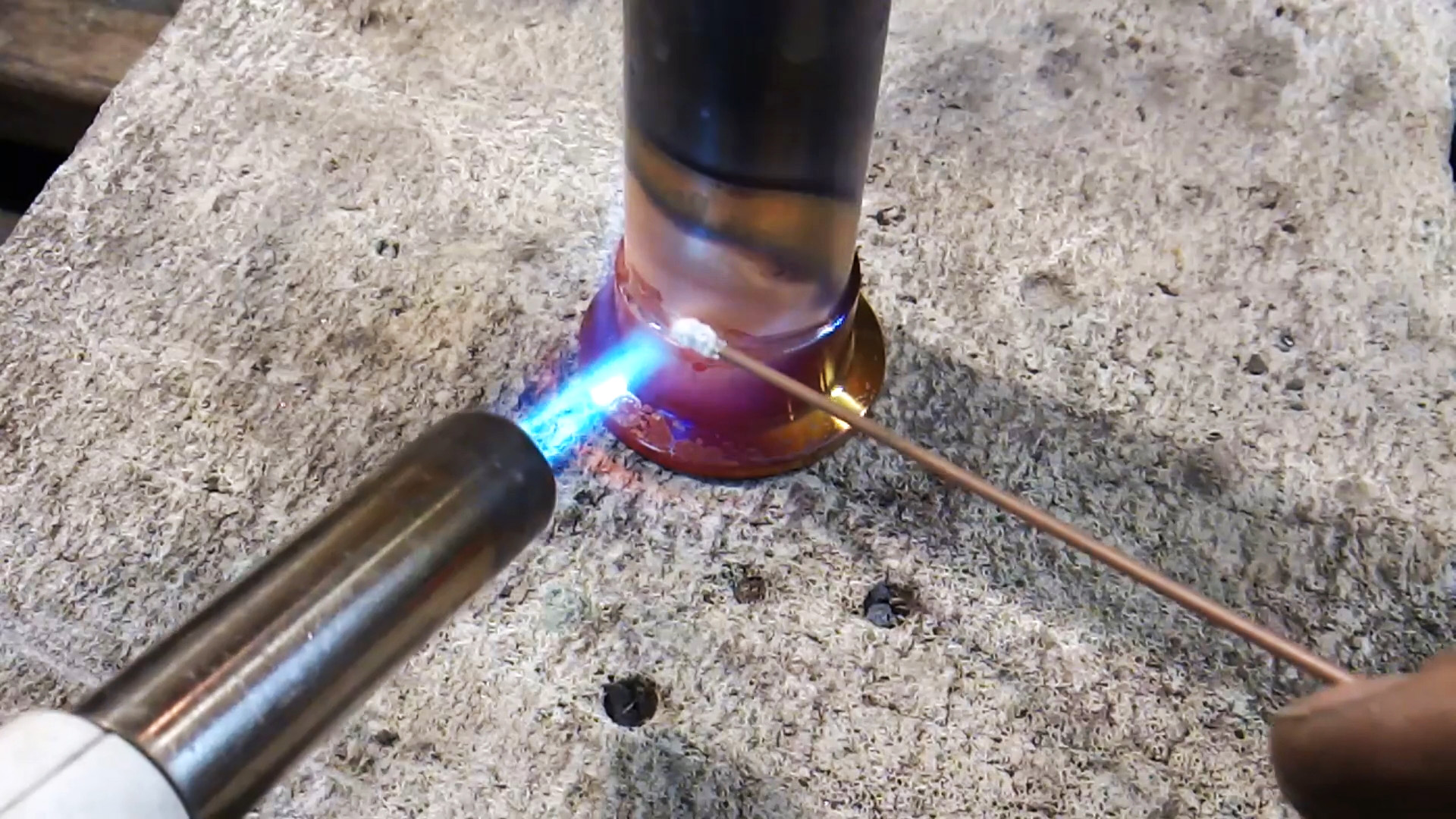 - Постепенно прогревается зона спайки, пока не изменится цвет металла.