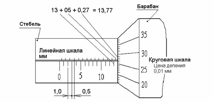 Принцип работы гладкого микрометра самый простой. Инструмент такого типа является наиболее распространенным в быту: