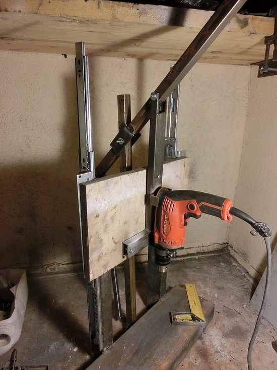 Когда изготавливают самодельный сверлильный станок из дрели, то данному этапу необходимо уделить особое внимание. Дело в том, что вертикальный ход должен быть мягким, без перекосов, люфта или смещений. Учитывая это, профессиональные мастера рекомендуют в работе использовать уже готовые направляющие, которые можно взять с других устройств. Также можно применять системы, изготовленные для выдвижения ящиков у корпусной мебели. Они достаточно надежны и могут выдерживать большие нагрузки.