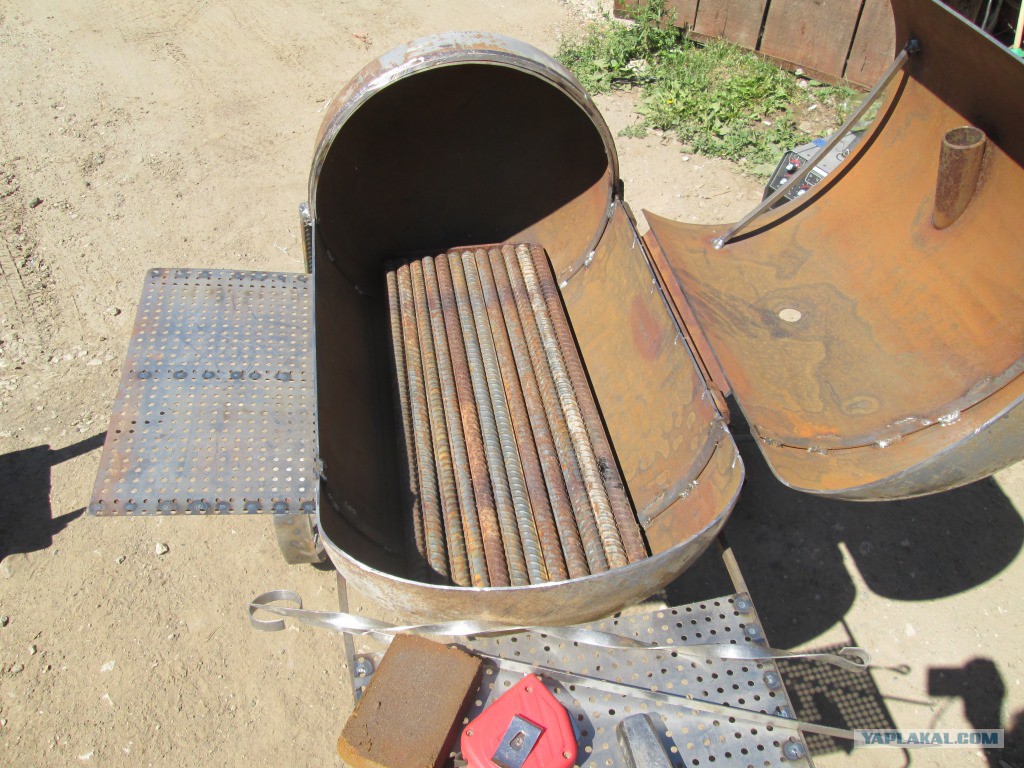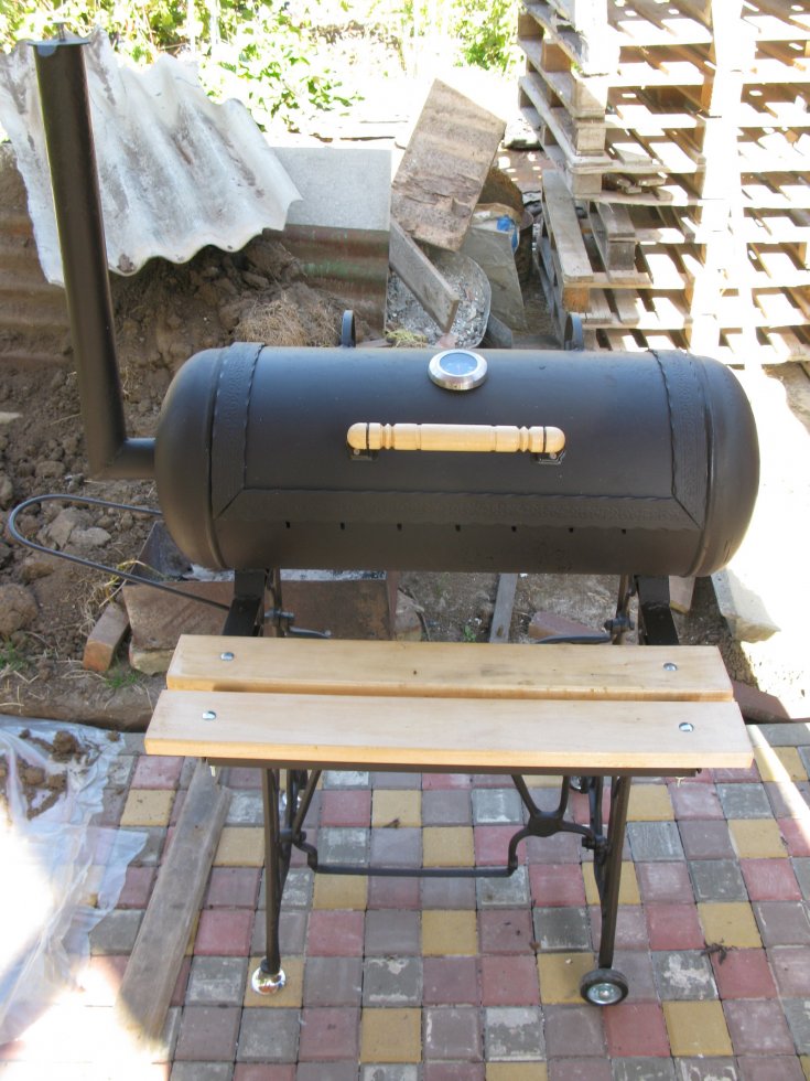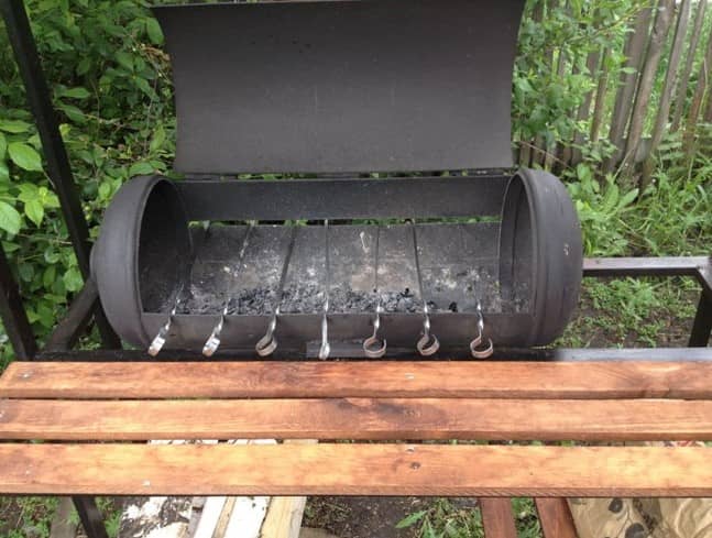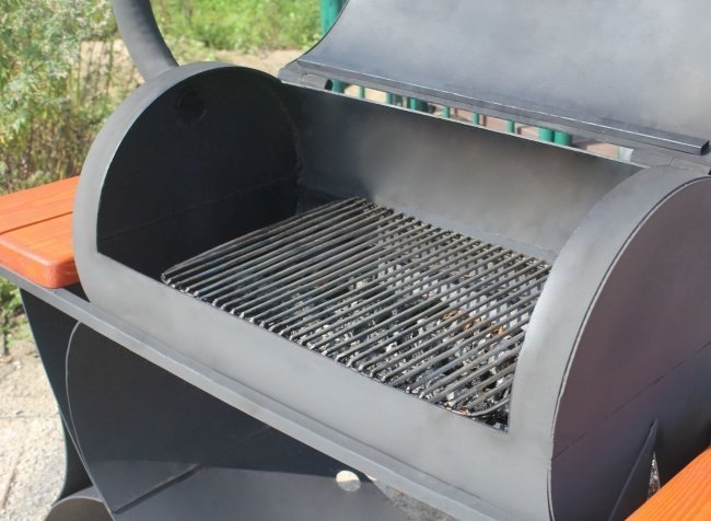 В нем готовится гриль, шашлык, барбекю, можно коптить различные продукты. Дополнительно устанавливаются дымоходы и термометры, приделываются поддувала для контроля потока свежего воздуха и т. д.