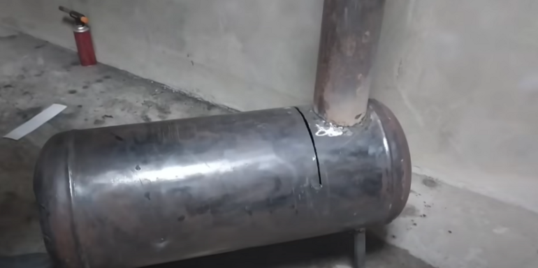 Прежде всего необходимо разрезать баллон. Этот процесс достаточно небезопасен, поэтому необходимо соблюдать все меры безопасности. Убедитесь, что газовый баллон точно пустой и не имеет остатков газа .