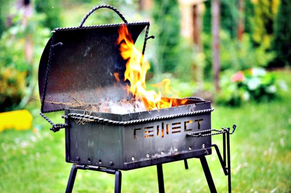 - Достаточно большие габариты и вес не позволят вам без особых усилий переносить мангал с места на место, поэтому без помощника не обойтись.