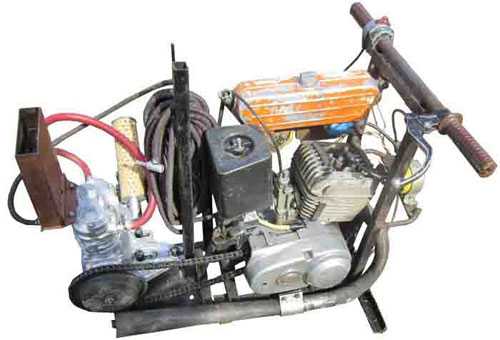Вот тут то и пригодится самодельный вулканизатор сделанный при помощи поршня от двигателя мотоцикла Восход для которого не нужна электрическая энергия, а всего лишь нужно 40-50 грамм бензина, который находится у нас в баке вездехода.