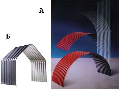 Разновидность поперечной гибки можно назвать придание «арочной» формы. Из-за отсутствия острых углов такая операция менее «травмирующая» и при правильном расчете радиуса изгиба, позволяет получить ровную и прочную гнутую конструкцию. Однако специалисты советуют отказаться от самодельных «арок» в пользу промышленного изготовленного «гнутого» профлиста.