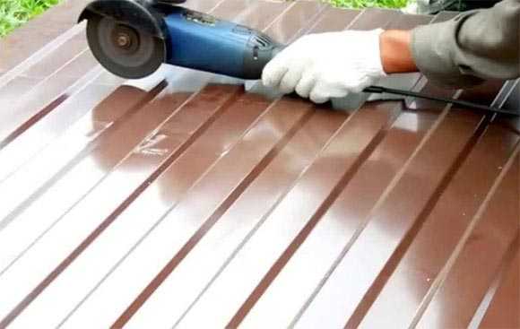 Запрещается прибивать профнастил гвоздями, поскольку при сильных порывах ветра они легко отрываются. Если необходимо укоротить длину листа, то можно использовать болгарку, в которую вставлен специальный диск для резки профнастила, и избегать газовой резки и сварки материала.