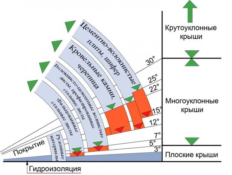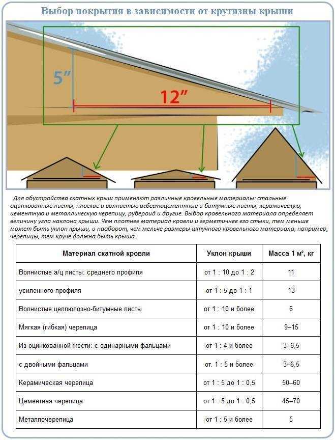 Для каждого кровельного материала установлены допуски по наименьшему уклону. Другие факторы, влияющие на выбор угла скатов крыши: