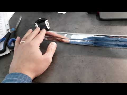 Процедура нанесения плёнки не так уж сложна, но специфична и требует точности и аккуратности. Отметим, что способ применим не всегда, поскольку требует снятия детали. Если это возможно – полностью удаляем слой хрома, производим зачистку/полировку металла, обезжириваем его разбавленным водой Уайт спиритом. Прикладываем виниловую плёнку к обрабатываемой детали, пока – не снимая подложки. Размечаем края, обрезаем лишнее, оставляя небольшой запас. Последующие этапы выполнить без помощника будет трудно.