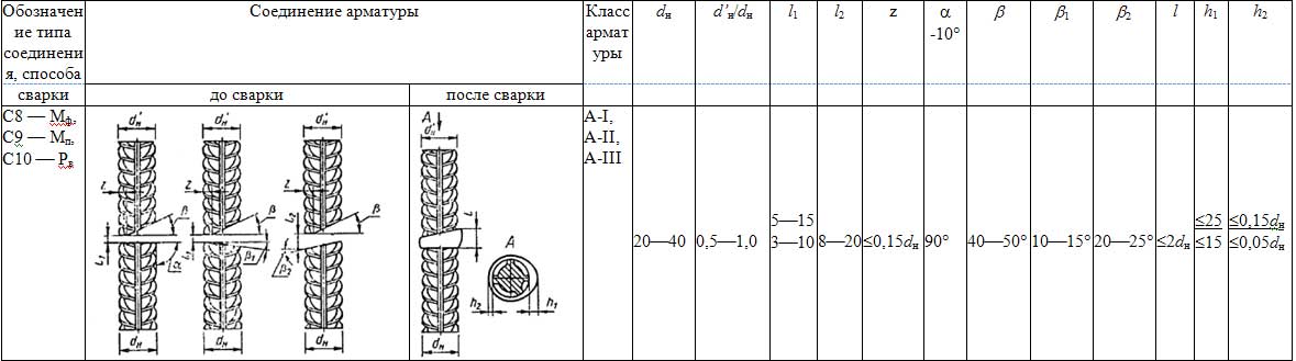 Изображение стыкового соединения арматуры контактной сваркой (Ко, Кн, Км, Кп) и способами МФ, Мр, Рв:
