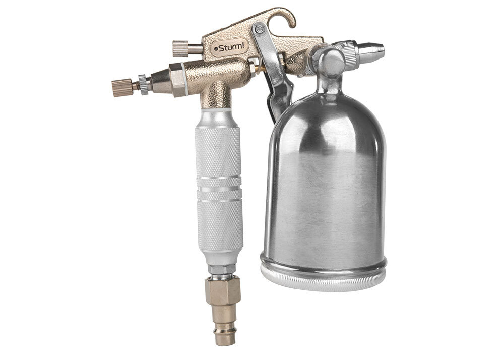 Имея совсем небольшую цену, конструкция абсолютно независима от компрессора и электросети. Но качество работ и количество расходуемого материала оставляют желать лучшего.