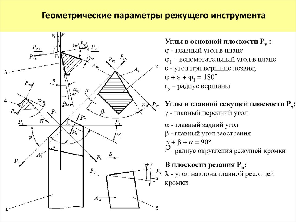 - Вспомогательный угол заострения β1 – угол между передней и вспомогательной задней плоскостью резца.