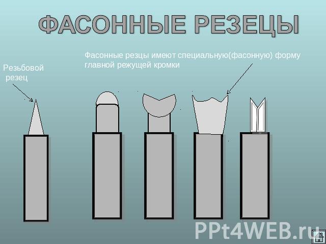 - Изогнутые — резцы, у которых ось державки при виде сбоку изогнута.