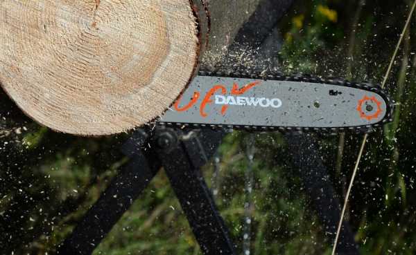 Такая цепная пила может успешно резать и сверху вниз, но любые другие вариации работы: под прямым углом или снизу вверх, не предусмотрены, поэтому тут можно отметить явный перекос в одно или два положения.