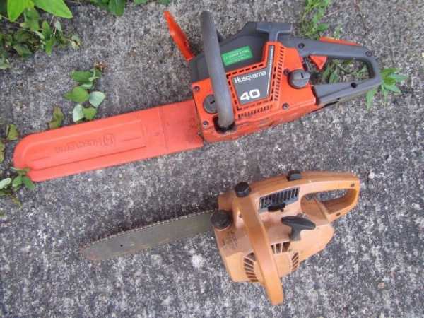 - вес. Здесь выигрывает электропила. Из-за того, что мощность меньше и нет бензина, наш электроинструмент гораздо удобнее использовать и переносить.