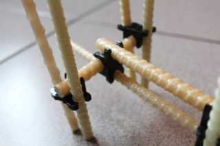 - Короткие стержни удлиняют, используя «Г»-образные детали, чтобы добиться полноценного углубления в стену основания.