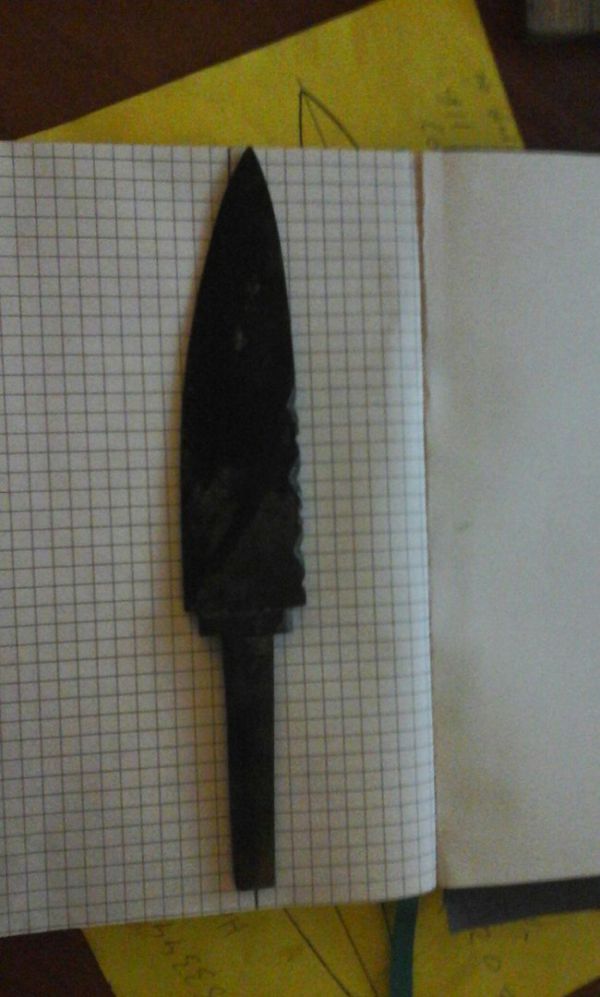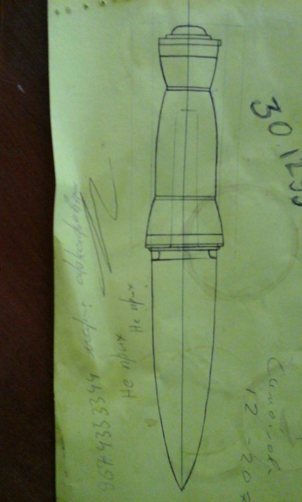 Пока напильник грелся в костерке, набросал на бумаге эскиз того, что хотел получить (намёк на Шотландский Скин-Ду)