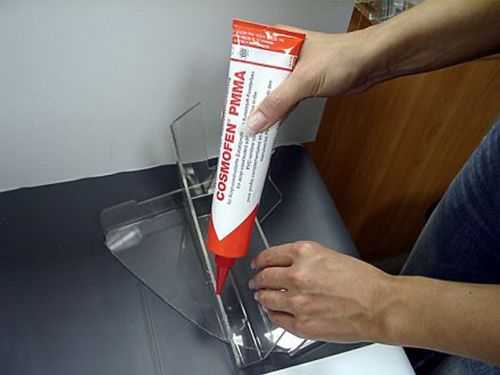 Средство для скрепления предметов из такого материала можно сделать даже самостоятельно. Для этого понадобится смешать 1 часть целлулоидных опилок и 2 части растворителя. Такую смесь нужно хранить под крышкой. Также для работы с изделиями из термопластов прекрасно подойдут средства «МЦ-1», «Марс», «Ц-1», которые профессионалы считают лучшими составами.