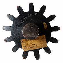 Текущая версия страницы пока не проверялась опытными участниками и может значительно отличаться от версии, проверенной 15 января 2019; проверки требуют 2 правки. Текущая версия страницы пока не проверялась опытными участниками и может значительно отличаться от версии, проверенной 15 января 2019; проверки требуют 2 правки.Зубча́тое колесо́ или шестерня́[1], зубчатка[2] — основная деталь зубчатой передачи в виде диска с зубьями на цилиндрической или конической поверхности, входящими в зацепление с зубьями другого зубчатого колеса.